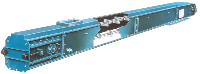 A scraper flight conveyor consists of metal, wood, or plastic flights attached at uniform intervals to one or two strands of endless chain which moves the flights along in a trough, the chain or chains passing around sprockets at the end of the trough. |